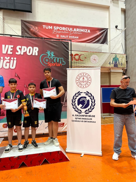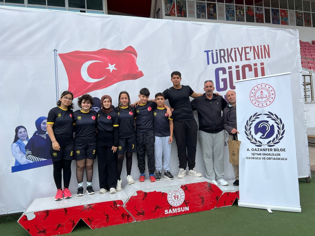 Gençlik ve Spor Bakanlığı tarafından düzenlenen Okul Sporları İşitme Engelliler Türkiye Müsabakaları, bu yıl Samsun’da büyük bir coşku ve heyecanla gerçekleştirildi. Türkiye'nin dört bir yanından gelen başarılı sporcuların kıyasıya mücadele ettiği turnuvada, Okulumuz Ahmet Gazanfer Bilge İşitme Engelliler Ortaokulu öğrencileri gösterdikleri üstün performansla adeta göz doldurdu.